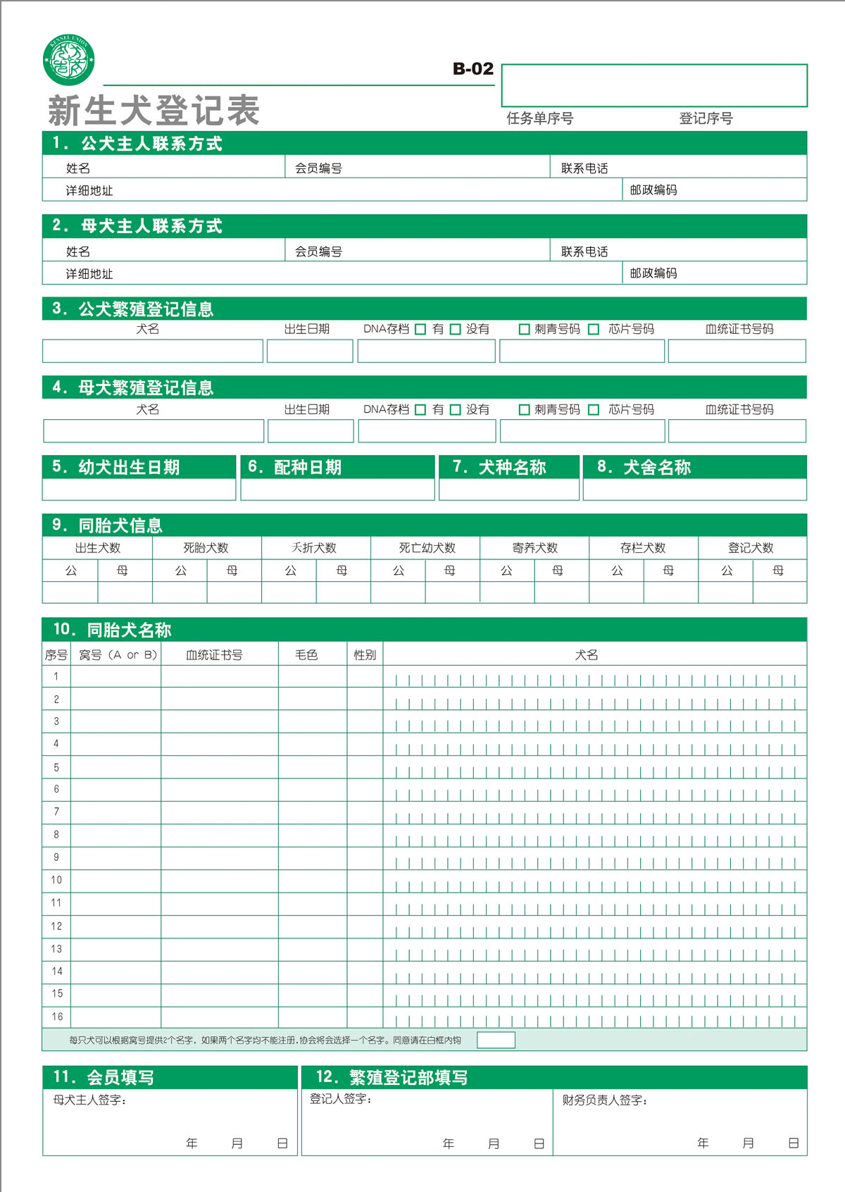 新生犬登记表